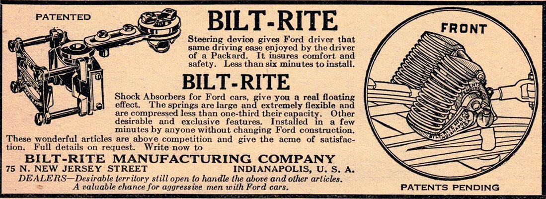 Ford Model Ts did not come from the factory with shock absorbers. Devices to improve ride and handling were very plentiful from parts houses and catalogs. These were the most popular upgrades during the T era. Coiled spring types made by Hassler were very popular. They are most commonly fitted on the front only but can also be fitted at the rear as well. Sets often come up for sale at swap meets and on auction sites like eBay. Several of the major T suppliers also sell shock absorbers for Ts. Be careful that they are not the type only suitable for T buckets, high-powered race cars with modern frames and mechanicals, designed to look a bit like original Ts but have few, if any, original T parts. The tubs resemble a Model T but are often made of fiberglass or plastic.